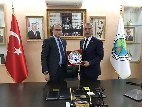 Türk Eğitim –Sen Hendek Şubesi Başkanı Kutluay Benli ve yönetim kurulu üyeleri, Hendek Belediye Başkanı Turgut Babaoğlu’na hayırlı olsun dileklerinde bulunarak, çini tabak hediye etti.