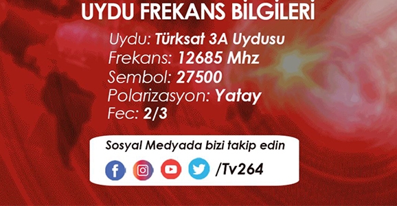 1 Mayıs’da yayınlarına başlayacak olan TV 264’ün frekans bilgileri ise şu şekilde:
