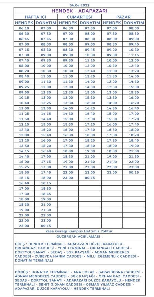 Hendek sakarya arasi yolcu fazlaligi saatlere uyulmuyor