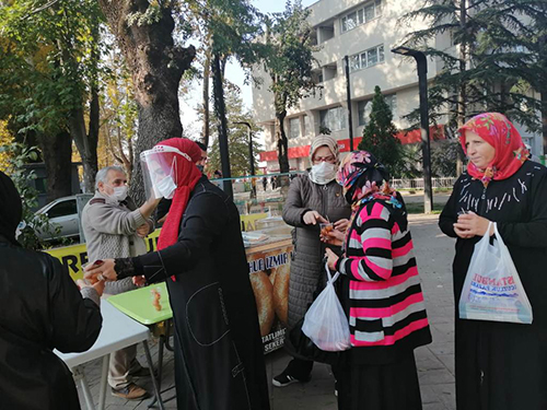 Muammer Sencer Caddesi üzerinde kurulan yöresel yiyecek ve doğal ürünler fuarının yer aldığı bölümde Ülkü Ocakları Hendek İlçe Başkanlığı vatandaşlara lokma dağıttı.
