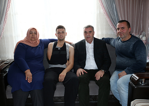 Başkan Toçoğlu, “Bitlis’in Hizan ilçesinde düşen çığ sonucu yaralanan hemşerimiz Jandarma Uzman Çavuş Yusuf Dertli’yi ve ailesini ziyaret ettik, geçmiş olsun dileklerimizi ilettik. Ülkemizin güvenliği milletimizin huzuru için çok zor şartlar altında mücadele veriyorsunuz. Rabbim sizlerden razı olsun. Çok büyük bir olay yaşandı. Sağlığınıza kavuşmanız için dua ediyoruz. Vatan size minnettar” dedi.