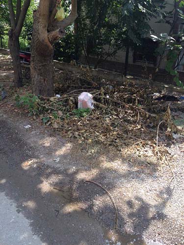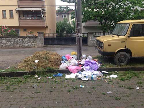 Sokak başındaki çöp konteyneri yerinden alınıp stadyuma koyulduğundan, sokak içindeki aydınlatma direği altı çöplük haline gelmiştir.