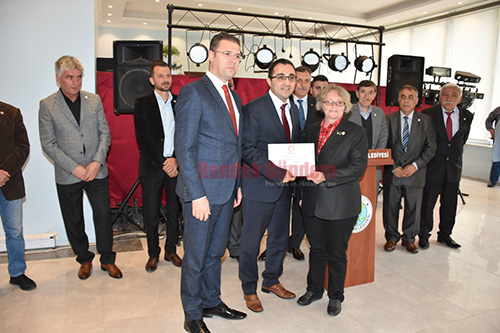 Konuşmaların ardından, Seçim Kurulu Başkanı Hakim Çağatay Akalın, Hendek’in ilk kadın muhtarı seçilen Hüseyinşeyh Muhtarı Şükriye Tatarhan’a mazbatasını verdi. Kaymakam Orhan Burhan da, Muhtar Tatarhan’ı tebrik ederek çiçek verdi.