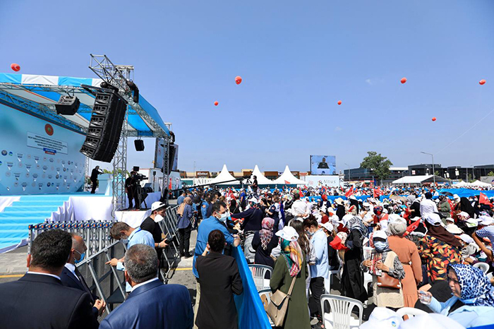 Cumhurbaşkanı Recep Tayyip Erdoğan, Sakarya’da hayata geçirilen, içerisinde Büyükşehir Belediyesi’nin 1 milyar 200 milyon TL değerindeki 18 projesinin de yer aldığı toplam 157 projenin toplu açılış töreni için Sakarya’ya geldi. Cumhurbaşkanı Erdoğan’ı Arifiye ilçesinde bulunan Tank Palet Fabrikası’nda Başkan Ekrem Yüce ve şehir protokolü karşıladı. Burada yapılan toplantının ardından, cumhurbaşkanı ve beraberindeki heyet toplu açılış için Yeni Kadın Doğum ve Çocuk Hastanesi’nin önündeki tören alanına geldi. *** AK Parti Genel Başkanvekili Binali Yıldırım, Sağlık Bakanı Fahrettin Koca, Çevre ve Şehircilik Bakanı Murat Kurum, Tarım ve Orman Bakanı Bekir Pakdemirli, Milli Savunma Bakanı Hulusi Akar, Çalışma ve Sosyal Güvenlik Bakanı Kürşat Bilgin, Enerji ve Tabii Kaynaklar Bakanı Fatih Dönmez, AK Parti Grup Başkanvekili Mahir Ünal’ın da katıldığı açılışa, Başkan Ekrem Yüce’nin yanı sıra AK Parti Genel Başkan Yardımcısı Ali İhsan Yavuz, AK Parti Milletvekilleri Çiğdem Erdoğan Atabek, Kenan Sofuoğlu, Recep Uncuoğlu, MHP Milletvekili Muhammed Levent Bülbül, Sakarya Valisi Çetin Oktay Kaldırım, AK Parti İl Başkanı Yunus Tever, ilçe belediye başkanları, şehir protokolü ve çok sayıda vatandaş katıldı. *** Cumhurbaşkanı Erdoğan, konuşmaların sonrasında “Hayırlı olsun” diyerek Sakarya genelinde hayata geçen projelerin açılış kurdelesini kesti.