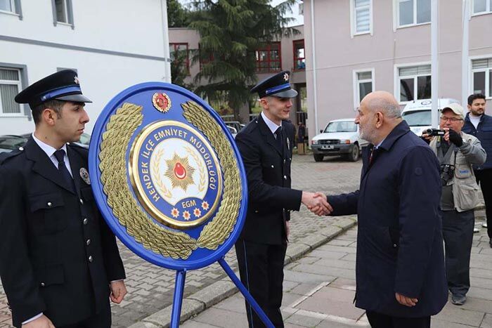 Hükümet Konağındaki törenin ardından protokol üyeleri Hendek İlçe Emniyet Müdürlüğünü ziyaret ederek görev yapan polislerin Polis Haftası’nı kutladı. Burada emniyet mensuplarıyla bir araya gelen protokol üyeleri, fedakarca görev yapan güvenlik güçlerine teşekkür etti.