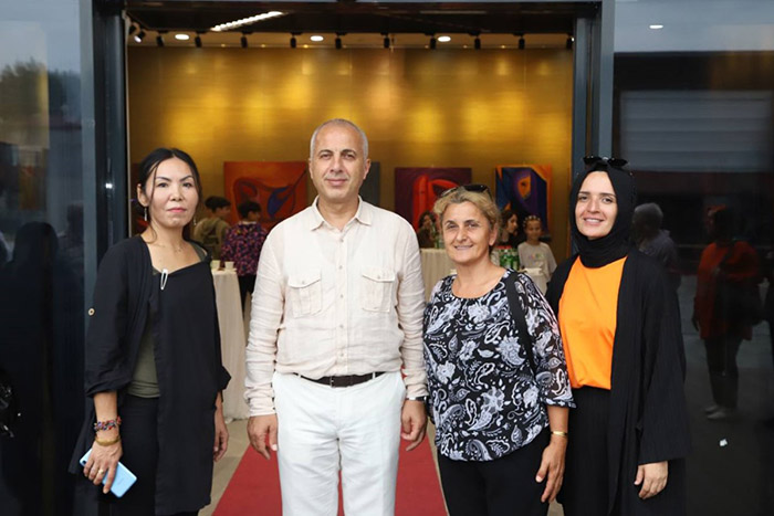 Ressam Elvira Boya’nın kübist ve ekspresyonist tarzda tuvale aktardığı eserlerini inceleyen Başkan Babaoğlu, günün anısına hatıra defterine not bıraktı.