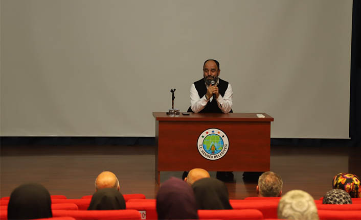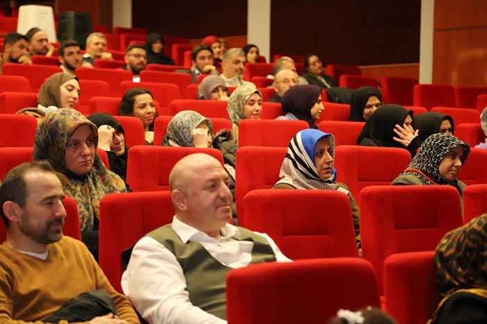 Ticaret Merkezi Konferans Salonu’nda düzenlenen etkinlikte, Ahmet Bulut Hoca, toplumsal dayanışma, aile içi iletişim, çocuklara iyi örnek olmanın önemi ve teknolojinin bilinçli kullanımı gibi konular üzerine değerli bilgiler paylaştı.