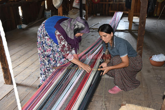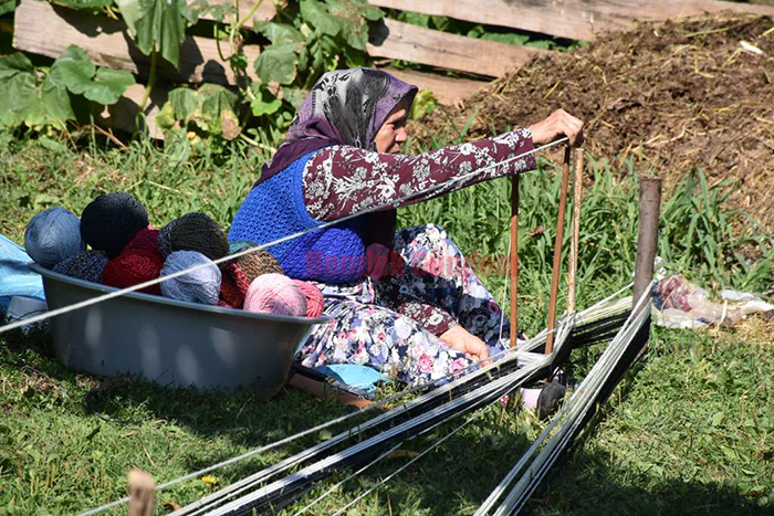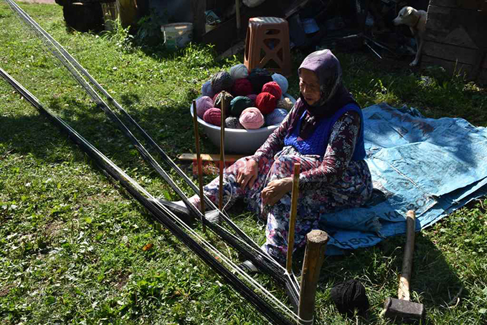 Yöresel ismi ile Çul ve Dırmaç örme hazırlığı yapan Emine Açıkdeniz (80) Annesinden öğrenip halen boş vakitlerinde gelenek olan evlerde ve yük taşımada kullanılan çul ve dırmaçların nasıl dokuduğunu anlattı.