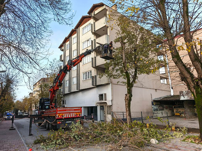 Ekipler, temizlik programı kapsamında sokaklarda çevre düzenini iyileştirmeye yönelik detaylı çalışmalar gerçekleştirirken, yaşlanmış, kurumuş veya devrilme riski taşıyan ağaçlar da uzman ekipler tarafından kontrollü şekilde kesilerek ortam güvenliği sağlanıyor.