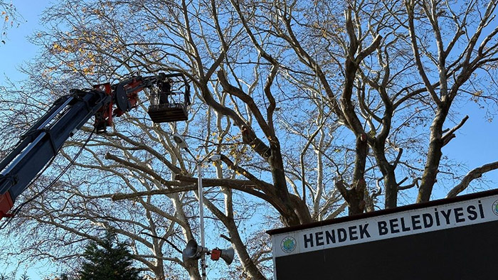 Hendek Belediyesi ekiplerince Hendek Büyük Camii bahçesinde bulunan ağaçların kurumuş ve tehlike oluşturan dalları ağaçların gelişimini kuvvetlendirmek, sağlıklı kalmalarını sağlamak ve rüzgâr nedeni ile ağaç dallarının kırılıp cal ve mal konusunda herhangi bir zarar vermemesi adına budama çalışmaları yapılarak temizlendi.