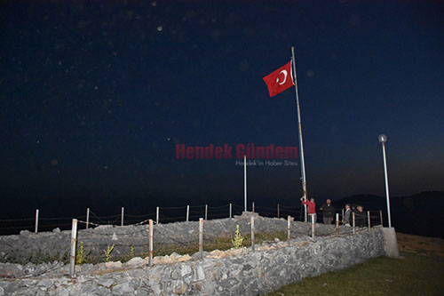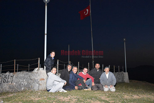 Hendek Dikmen Mahallesi Muhtarı Menderes Ayvaz beraberinde Mahalle sakinleri ile birlikte Sakarya’nın en yüksek noktası Dikmen Tepe (1725) noktasında Şehitlik ziyaretinin ardından göndere Türk Bayrağı çekerek 15Temmuz Demokrasi Nöbetine destek verdi.