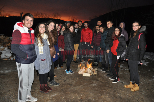 Hendek Dikmen Mahallesi Muhtarı Menderes Ayvaz’ın misafiri olan Öğrenciler yakılan meydan ateşinde ısınıp yanlarında getirdikleri yiyecekleri mangalda pişirip yediler.