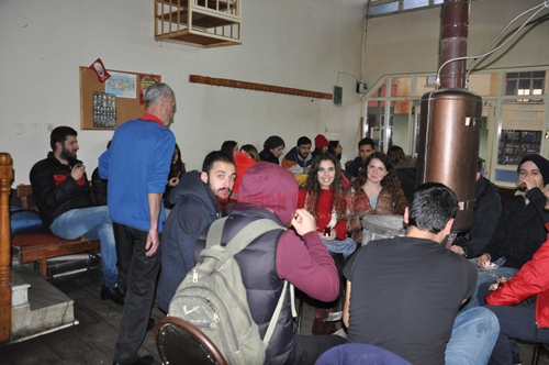 Mahalle Kahvesinde kısa bir molla veren Öğrenciler sıcak çaylarını yudumlayarak sohbet eşliğinde dinlendiler.