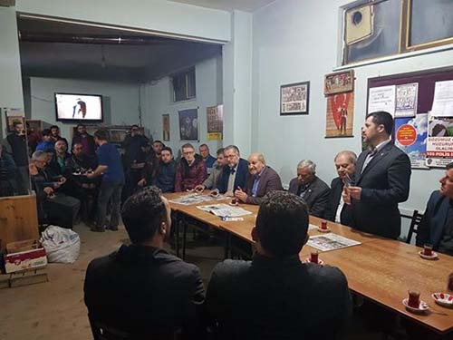 Akşam Programında Milletvekili Mustafa İsen, ilçe Başkanı Ali Kemal Sofu , Belediye Başkanı İrfan Püsküllü beraberindeki heyet ile Tuzak Mahallesinde Kahvehane ziyareti yaptılar.