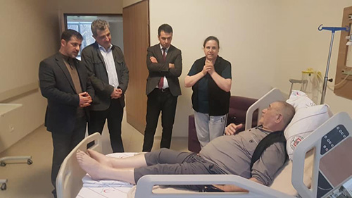 Hastane Müdürü Gökhan Eygi ve Genel Cerrahi Uzmanı Op. Dr. Ahmet Karakaya ile hastane hakkında sohbet etti, daha sonra servisleri gezerek hasta ve yakınlarına geçmiş olsun temennilerini iletti.