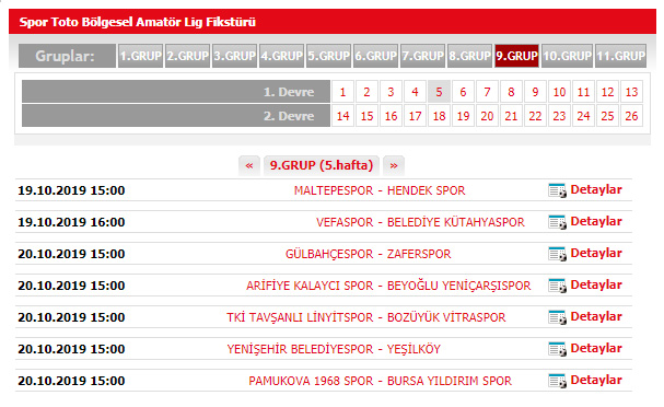Bölgesel Amatör Lig 9. Grup 5. Haftanın tüm karşılaşmaları ise şöyle;