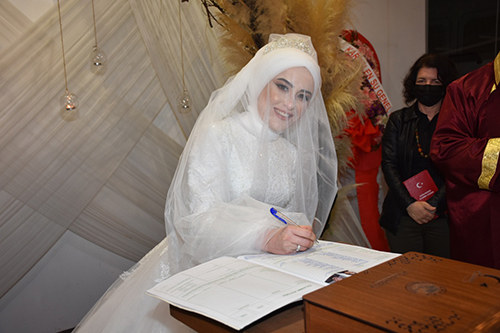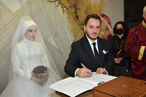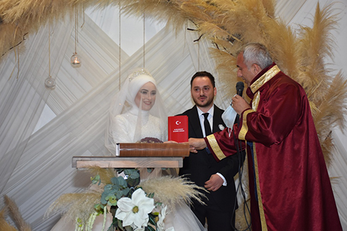 ENG Garden Düğün salonunda pandemi kuralları çerçevesinde düzenlenen nikah merasimine Hendek Belediye Başkanı Turgut Babaoğlu, Başkan Yardımcıları, Meclis Üyeleri, Çeken ve Işıkveren Ailelerinin yanı sıra genç çiftlerin dostları, arkadaşları ve sevenleri katıldı.