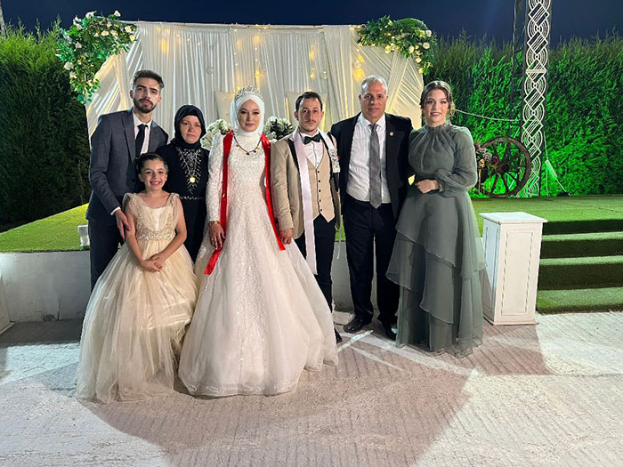 Nikah merasimi sonrasında gerçekleştirilen düğün töreninde genç çiftleri yalnız bırakmayan dost ve arkadaşları yöresel ezgiler eşliğinde gönüllerince eğlenerek genç çiftlerin mutluluklarına ortak oldular.