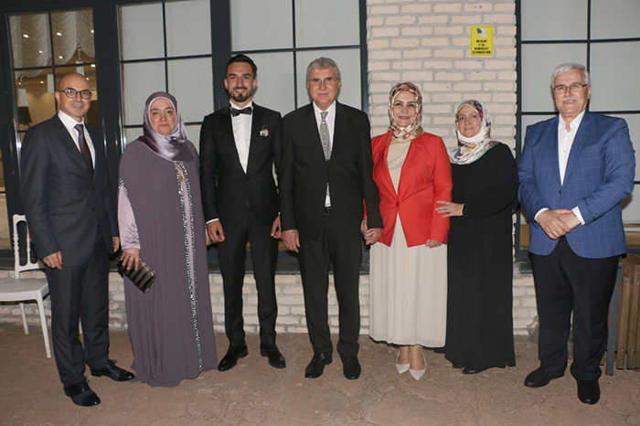 Başkan Yüce ve eşinin düğün salonuna yaya yürüyerek ulaşmaları, Yılkın Ailesine duydukları saygı ve sevgiyi gösterdi.