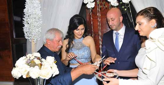 Onur ve Melek çiftinin Nişan yüzüklerini Sadi Yüce hayırlı olsun temennileri ile taktı.