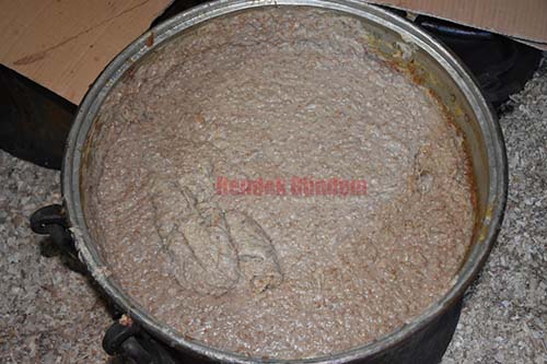 Yedi bin kişilik keşkek hazırlıyoruz. Bir ton Buğday, bir ton et kullanıyoruz. Kişi sayısını keşkek verdiğimiz tabak ile kaç kişi yemek yediğini belirliyoruz, geçen yıl yaptığımız keşkek yetmemişti.