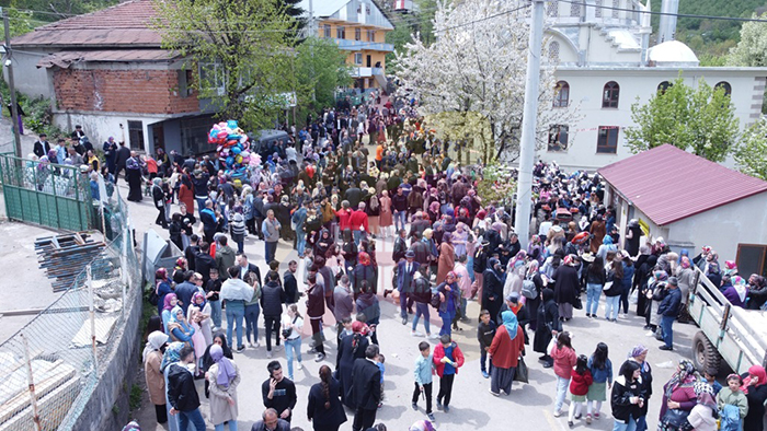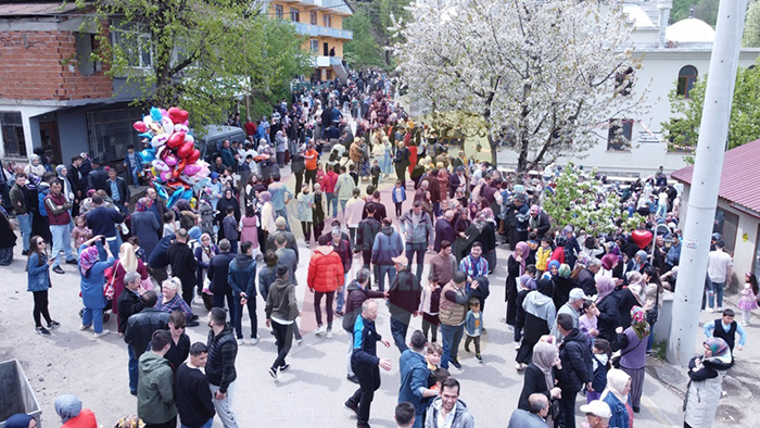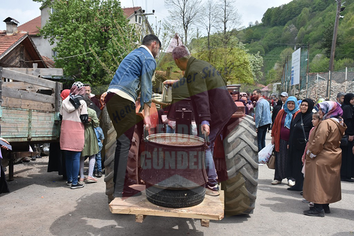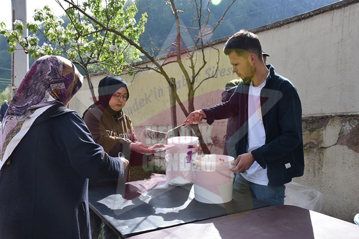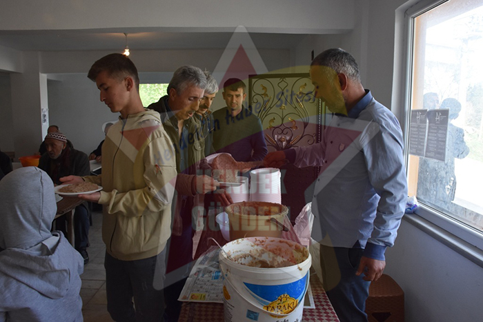 Kaç kişiye ikram ettiğimizi keşkek verdiğimiz tabak ile belirliyoruz. Köy kazanları ile 40’a yakın kazan keşkek odun ateşi ile pişiriliyor ve Ramazan Bayramının birinci günü Mahalle Halkı ile gelen misafirlere Bayram Namazının ardından yapılan toplu Bayramlaşma ile birlikte ikram ediliyor.