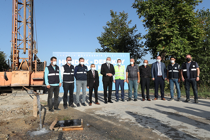 Başkan Yüce, su kaynağına ulaşılan son nokta olan Hendek Dereköy’de 45 yıllık hasretin son bulduğunu ifade eden Başkan Yüce, “Kaynak suyumuz hayırlı olsun. Sadece Dereköy’de 2 bin vatandaşımızın su ihtiyacı karşılanmış ve 45 yıllık özlem bitmiştir. Emeği geçen SASKİ Genel Müdürü ve ekip arkadaşlarına şükranlarımı sunuyorum. Bu noktada iletim hattı yapılacak, elektrik hattı çekilecek ve trafo yerleştirilecek. Takriben 1 milyon TL’lik bir masraf olacak. Artık Dereköy’de sus sorunumuz bitmiş olacak. Vatandaşlarımız doya doya sularını içecekler. Su gayet berrak, tamamen içilebilir özelliğe sahip. Hemşerilerimiz kana kana içebilir. Şu anda 10 noktada sondaj çalışmalarımız devam ediyor. Çalışmanın devam ettiği 5 noktada sondaj tamamlandı.” diye konuştu.