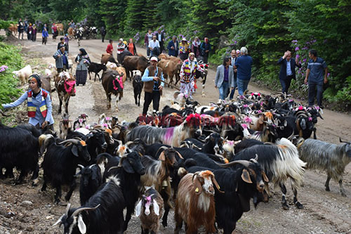 Gelin gibi süsledikleri hayvanları ile birlikte zil ve çan sesleri eşliğinde hep birlikte yola düşen Mahalle sakinleri yaklaşık 10 kilometrelik yolu  yüzlerce hayvanla kat ederek şenlik havasında Dikmen Yaylasına göç ediyor ve yaylaya geldiklerinde oba denilen meydanda toplanarak bir süre eğleniyor.