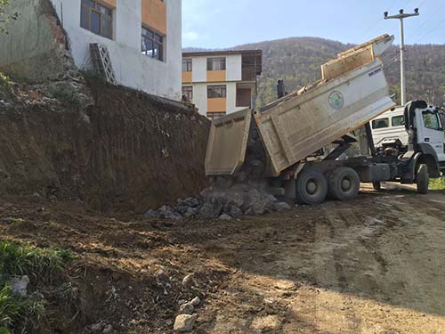 Sakarya Büyükşehir Belediyesi ile Hendek Belediyesinin ortaklaşa başladıkları çalışma ile önce duvar yıkılarak tehlike ortadan kaldırıldı.
