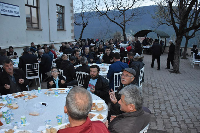 Dikmen Mahallesinde Ramazan ayında verilen toplu iftar davetleri sonrasında Ramazan Bayramının birinci günü toplu Bayramlaşma ve Vatandaşların katkıları ile kazan kazan yapılan Keşkek Yemeği ikram ediliyor.