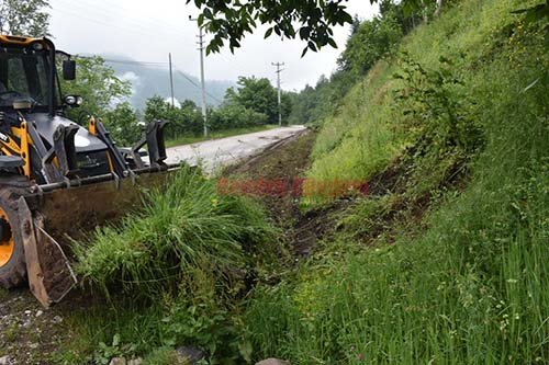 Ekipler tarafından yol kenarlarında bulunan su kanalları içerisindeki otlar temizlenirken, kanal olmayan yerlere de su kanalları yapılacağı düşünülüyor.