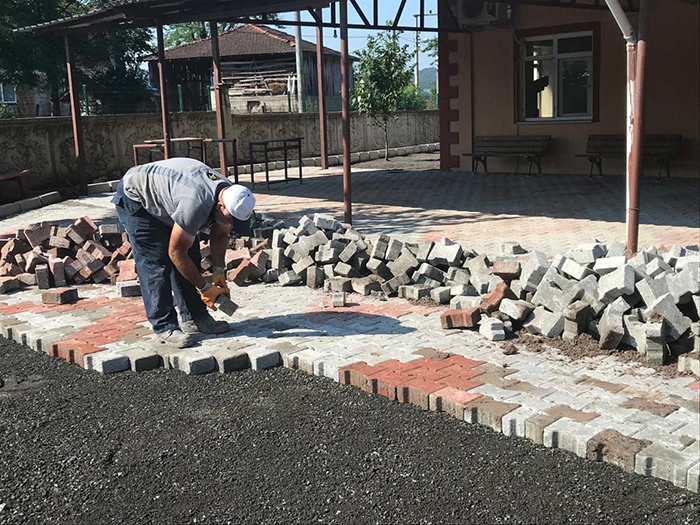 Hendek Belediyesinin katkıları ile Cami bahçesinde kilitli parke ve çevre düzenleme çalışmaları yapılıyor.