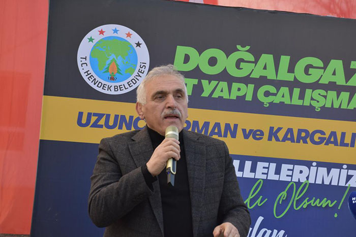Kargalıhanbaba Mahallesinde düzenlenen törende konuşan Hendek Belediye Başkanı İrfan Püsküllü, “Doğalgaz yatırımlarımız sadece iki mahallemizle sınırlı kalmayacak.