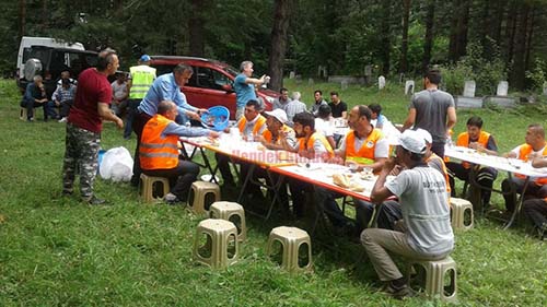 Asfalt çalışmalarının bitirilmesine az bir zaman kala yapılan ikramda Muhtarların tümü Grup Yolu çalışmalarında emek sarf eden, özveri ile çalışan abilerimize ve kardeşlerimize bu şekilde ikramda bulunarak hem teşekkür etmek hem de misafirperverliğimizi göstererek hoş bir seda bırakmak istedik.
