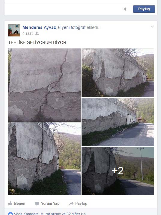Dikmen Mahalle Muhtarı Menderes Ayvaz sosyal medya hesabında yayınladığı fotoğraflarla desteklediği Dikmen Grup yolu üzerindeki bir duvarla ilgili tehlikeye dikkat çekiyor.