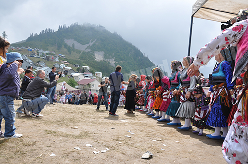 Zaman zaman gelen sis ve soğuk havaya aldırmadan horon oynayanlar hem coştu hem de izleyenleri coşturdu.