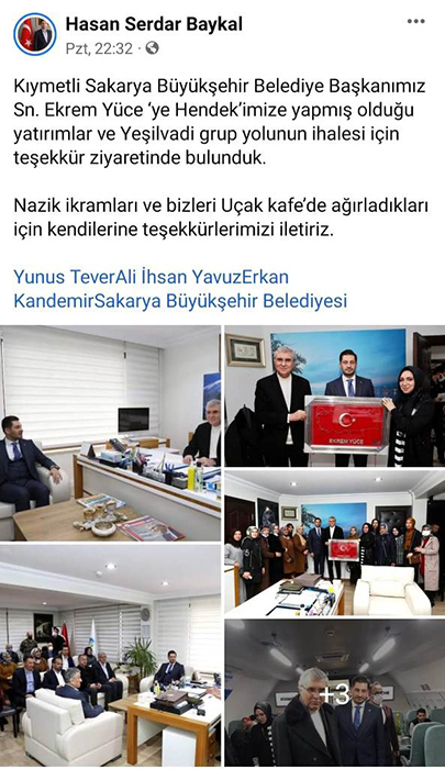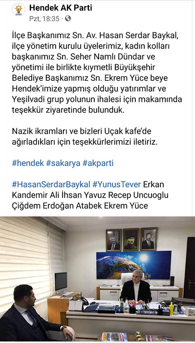 Yeşilvadi, Harmantepe, Sarıdede, Yeşilköy ve Kalayık Mahalle sakinlerimiz başta olmak üzere tüm Hendek ‘li hemşehrilerimize hayırlı olmasını diler, teleplerimiz doğrultusunda bizleri ve mahalle sakinlerini mutlu eden Sakarya Büyükşehir Belediye Başkanımız Sn. Ekrem Yüce ‘ye teşekkürlerimizi iletiriz” diye yazmıştı.
