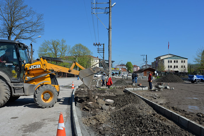 Dükkanları ihale ile hak sahiplerine teslim etmemiz ardından iş merkezi önünde bulunan eski belediye binasının yıkım işlemini gerçekleştirmiştik. Şimdi 1500 metrekarelik alanda 32 araçlık otopark, meydan ve çevre düzenlemesi çalışması yapıyoruz.