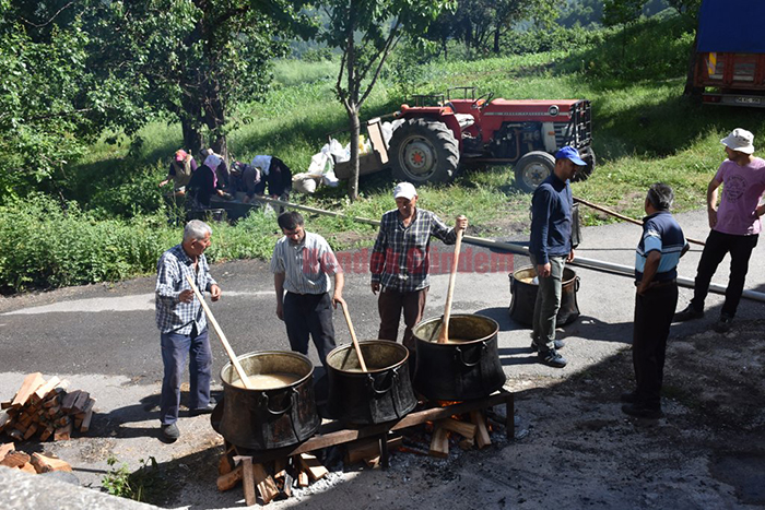 Örf, adet, gelenek ve göreneklerini nesilden nesile aktararak devam ettiren Hendek Dikmen Mahallesi sakinleri, Ramazan Bayramında Toplu Bayramlaşmanın ardından kazan kazan hazırlanarak Vatandaşlara Yöresel Keşkek ikramında bulunuyordu.