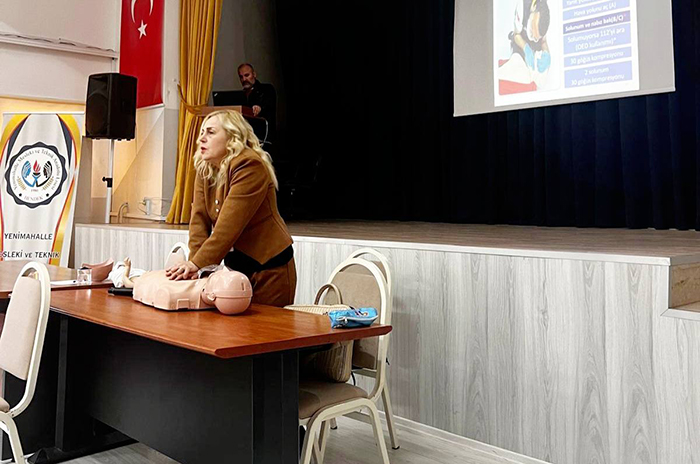 Eğitimde, yabancı cisim tıkanmalarında yapılması gereken ilk yardım uygulamaları ve temel yaşam desteği maketler üzerinde uygulamalı olarak gösterildi. Öğrenciler, bir insanın yaşamını kurtarabilecek doğru müdahaleleri adım adım öğrenirken, “yardım etmenin” sadece bilgi değil, aynı zamanda bir vicdan meselesi olduğunu da hissettiler.