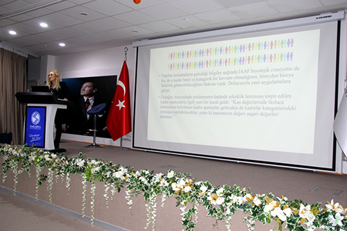 Konferansın ikinci oturumunda konuşmacı olarak katılan Uz. Hem. Deniz De Asis biyolojik ve toplumsal cinsiyet rollerine olan hormonal ve çevresel etkilerden bahsederek ,Güney Afrikalı sporcu Semenya örneği ile toplumsal cinsiyet, fizyolojik farklılıklar ve ergenlikte cinsellik konularında gençlere bilgiler verdi. Yasaların koruyucu etkisinin olmadığı ve tabularla yönetilen ülkelerde şiddet ve istismara açık olunduğunu ifade eden De Asis bu konuda toplumsal eğitimin önemine vurgu yaptı. Özellikle cinsel yolla bulaşan hastalıklardan HIV /AIDS oranlarının ülkemizde son yıllarda hızla artış gösterdiğini ve yaklaşık son on yılda bu artışla AIDS vakaları son altı yılda beş kat arttığını ifade ederek gençlerin bu konuda dikkatli olmalarını önerdi.İnsan Haklarının önemine vurgu yaparak şiddet ve istismar oranlarının ülkemizde ve dünyada bilincin artmasıyla engellenebilileceğini ifade etti. Gençlerin öğrenim gördüğü kendi alanları konusunda duyarlılıkla sosyal sorumluluk bilinciyle toplumsal çalışmalarda bulunmalarını tavsiye etti.