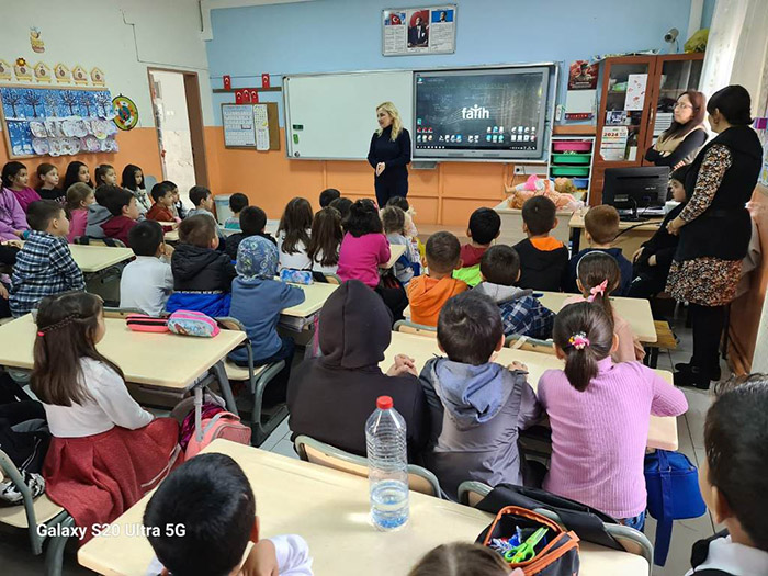 Okul öğretmenlerinden İlknur Göktürk’ün planladığı eğitimin sunumunu İlçe Sağlık Müdürlüğü Eğitim ve Proje birimimi sorumlusu Uzm. Hemşire Deniz Çiftçi gerçekleştirdi. İnteraktif olarak gerçekleştirilen eğitim etkinliğine Okul Müdürü Mehmet Kılıç , Okul Öğretmenleri ve öğrenciler katılım sağladılar.