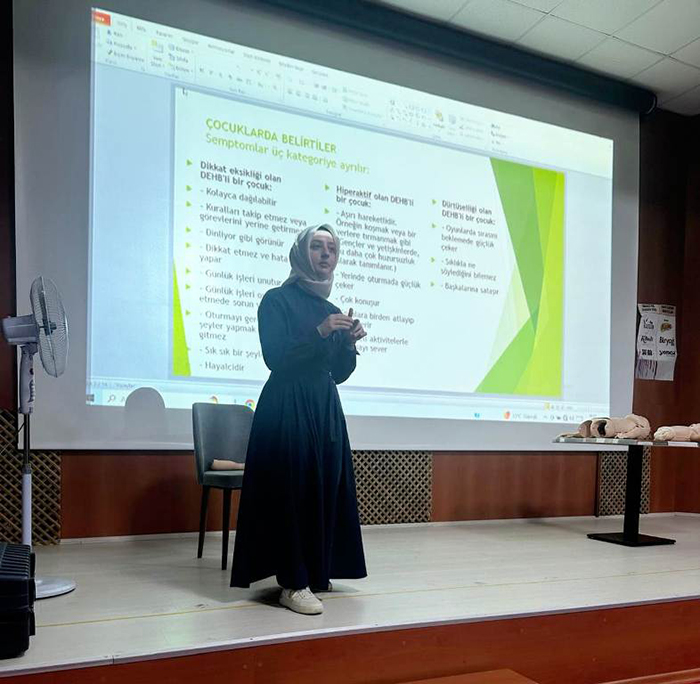 Eğitimin ikinci oturumunda Hendek Sağlıklı Hayat Merkezinde görevli Psikolog Melike Kahraman “Çocuklarda Dikkat Eksikliği ve Hiperaktivite” konularında katılımcıları bilgilendirdi.