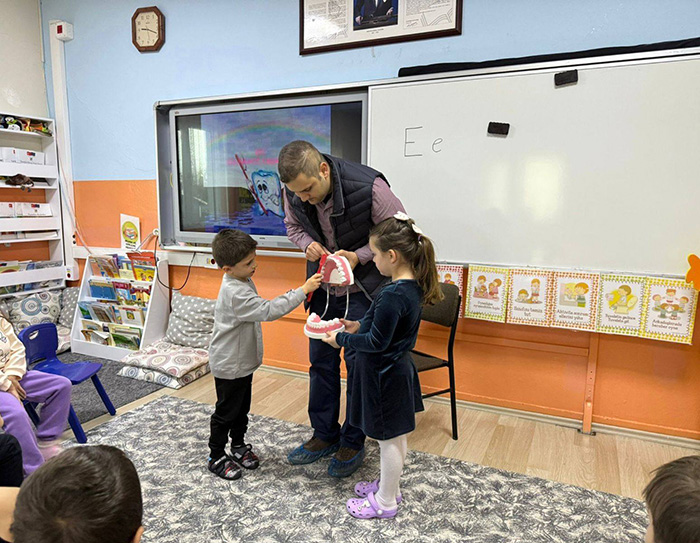 Her okulda çocuklarla yaş gruplarına uygun interaktif sunumlar yapılarak diş fırçalama teknikleri, doğru beslenmenin diş sağlığına etkisi ve düzenli diş hekimi kontrolünün önemi anlatıldı.