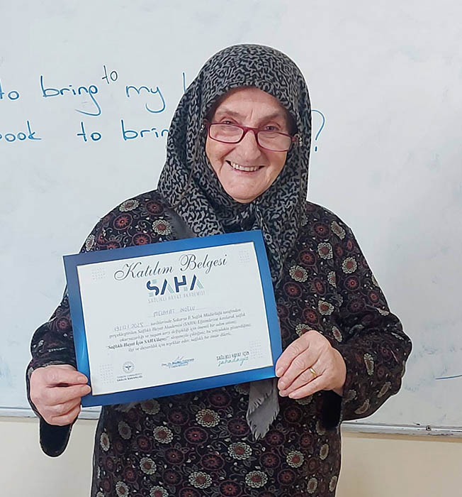 Eğitimde, Dr. Sena Aydoğmuş tarafından Sağlık Bakanlığı SAHA eğitimleri hakkında sunum yapılarak, sahada yürütülen koruyucu sağlık hizmetleri ve toplum sağlığına katkıları hakkında bilgi verildi.