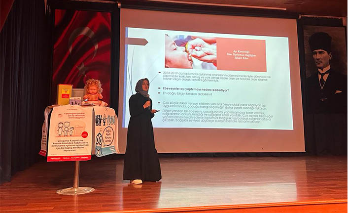 Çocukluk aşıları konusunda bilgi düzeyinin yükseltilmesi, toplumun sağlık güvenliği ve tedbirleri kapsamında gelecek nesillerin sağlıklı bir şekilde bulaşıcı hastalıklar ve etkilerinden zarar görmeden yaşamaları amacıyla gerçekleşen konferans gençlerin de katılımı ve sorularıyla tamamlandı.
