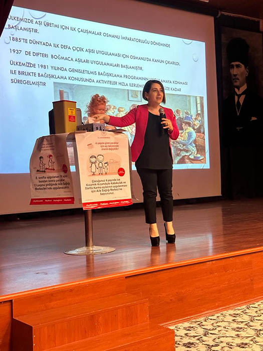 Çocukluk aşıları konusunda bilgi düzeyinin yükseltilmesi, toplumun sağlık güvenliği ve tedbirleri kapsamında  gelecek nesillerin sağlıklı bir şekilde bulaşıcı hastalıklar ve etkilerinden zarar görmeden yaşamaları amacıyla gerçekleşen konferans  gençlerin de katılımı ve sorularıyla tamamlandı.