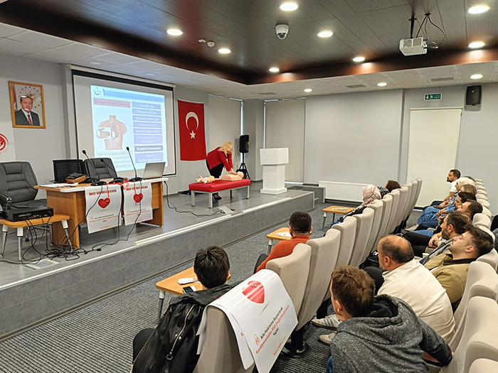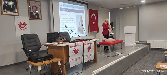 Ayrıca, Uzman Hemşire Deniz Çiftçi tarafından “Temel Yaşam Desteği” ve “Yabancı Cisim Tıkanmalarında İlk Müdahale” konularında uygulamalı bir sunum gerçekleştirildi. Eğitimde, acil durumlarda doğru ve hızlı müdahalenin hayat kurtarıcı rolü anlatıldı.