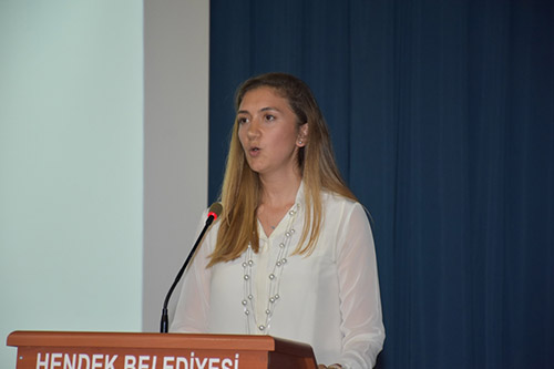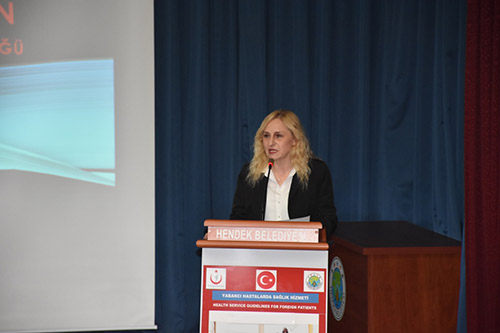Konferansda konuşan Hendek İlçe Sağlık Müdürlüğü personeli Uz.Hemşire Deniz De Asis , göçlerin sebepleri ve göçmenlerle ilgili sağlık sorunlarında iletişimin öneminden bahsetti.