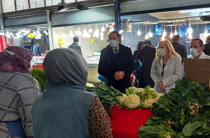 Hendek Kapalı Pazar Yerinde gerçekleşen etkinliğe katılan Hendek İlçe Sağlık Müdürü Uz. Dr. Tekin Ulaş Karatepe toplumun enfeksiyon önlemlerine dikkat etmesinin dünyada ve ülkemizde COVID19 Virüsünün neden olduğu bir pandemi sürecinde daha önem taşıdığını vurgulayarak esnafı bilgilendirdi.